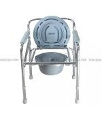 In addition, the commode is equipped with a convenient removable bucket for easy cleaning and maintenance. Its compact size makes it ideal for use in smaller spaces, such as bathrooms or bedrooms. Overall, this product provides a practical solution for those in need of assistance with daily living tasks, offering both comfort and functionality.